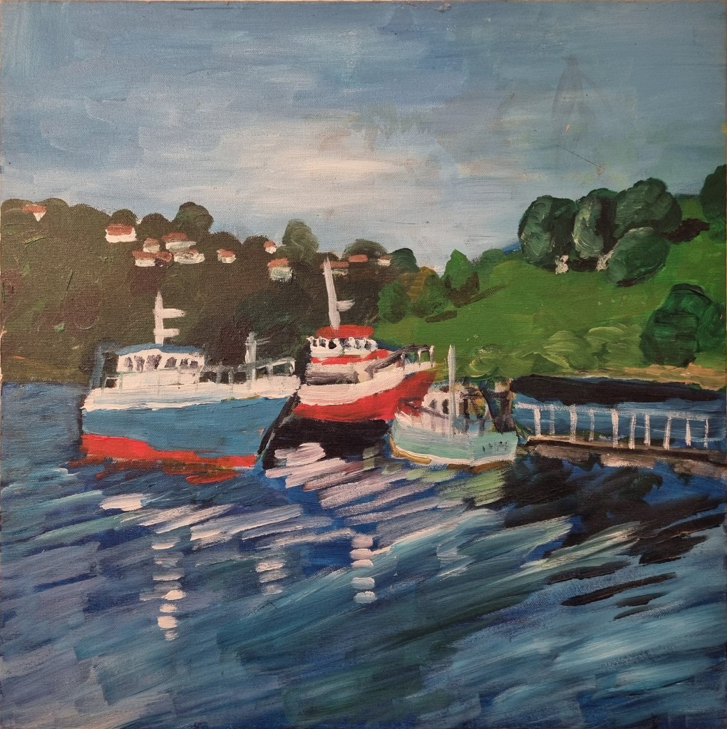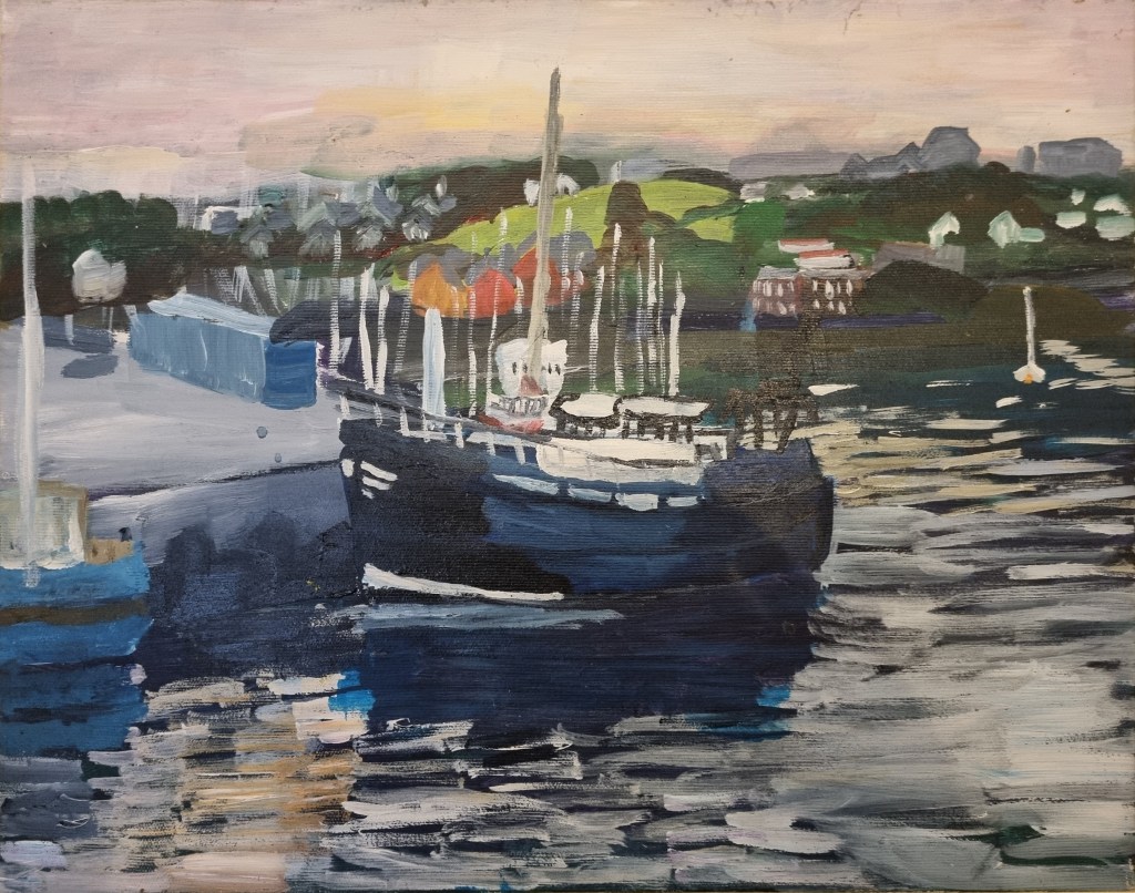 Besides human figures, I love painting boats. The images reflacted in the water intrigue me, and I always sturggle trying to portray them.